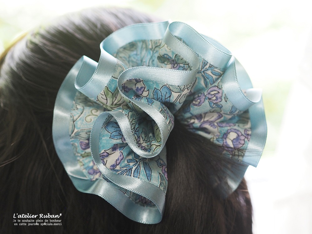 国産LIBERTY スイートピー・リーフ(ブルー)のシュシュ