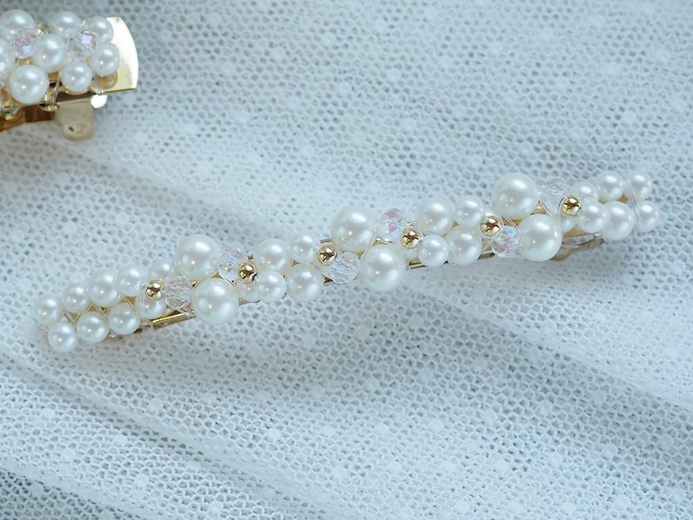 パールとビジューを配列した、スリムながら洗練されたデザインです。