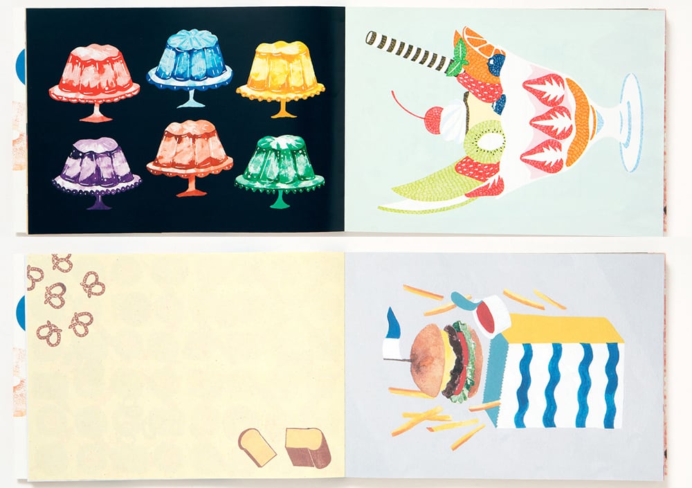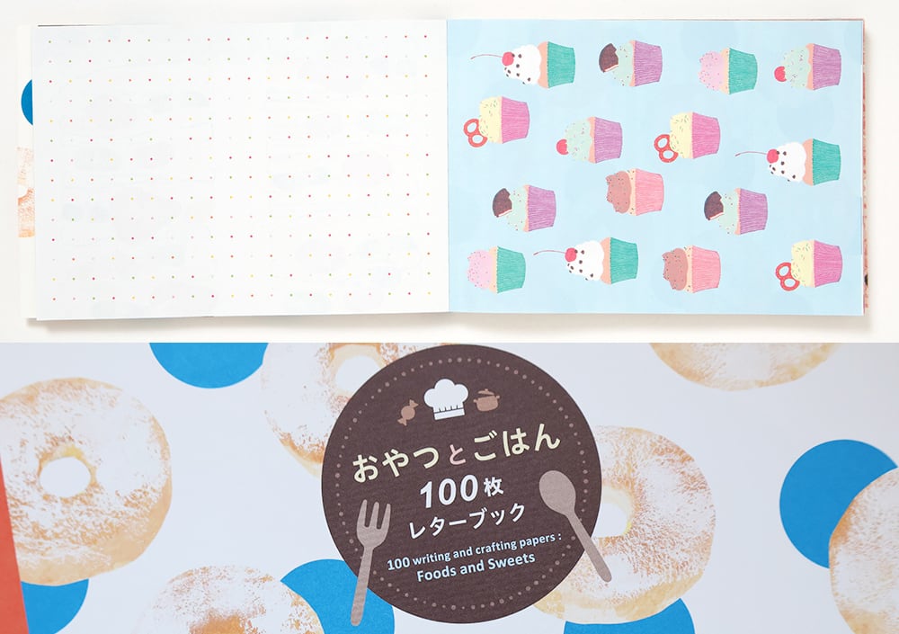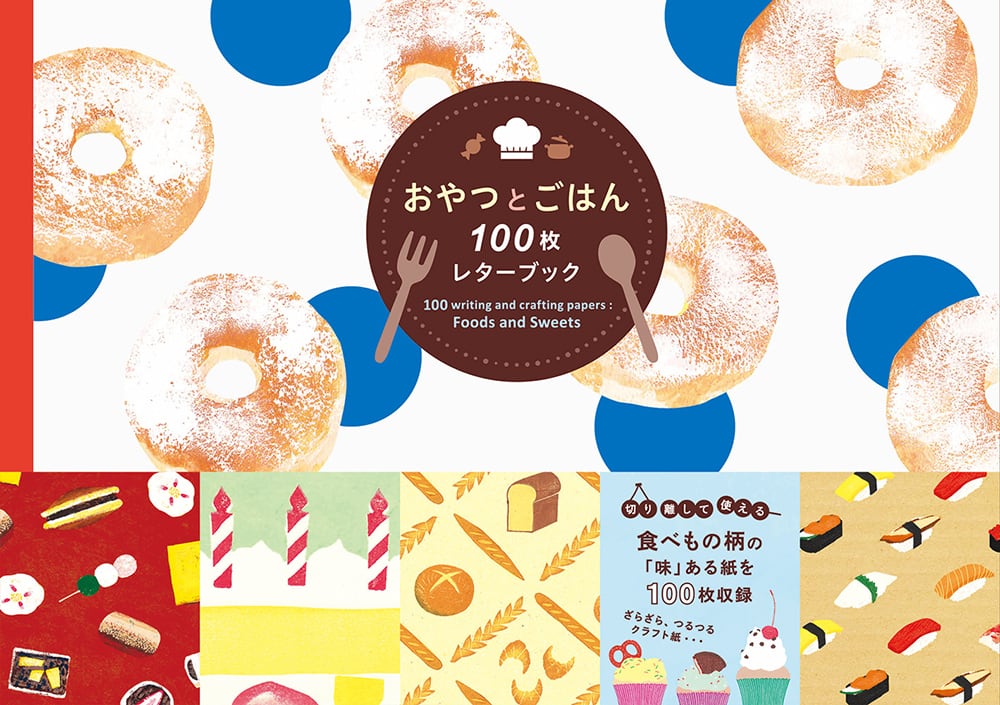 「おやつとごはん」をテーマにした50柄を集めて、1柄につき2枚ずつ収録しました。