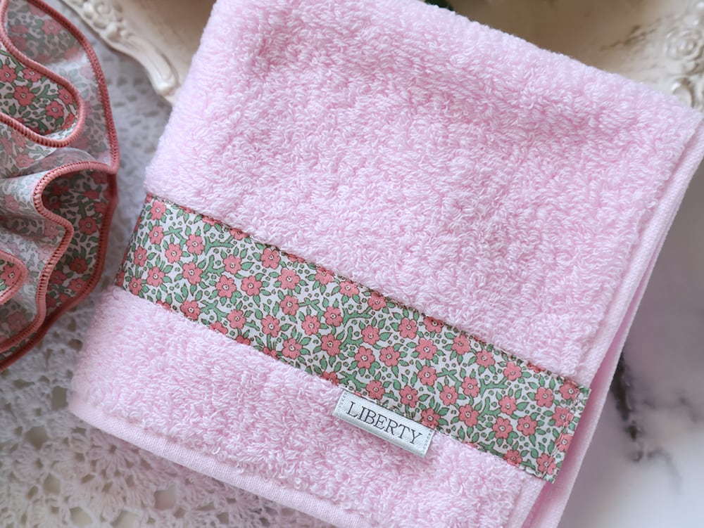 タオルハンカチは、サーモン系の物が見つからず、ピンクにさせて頂きました。