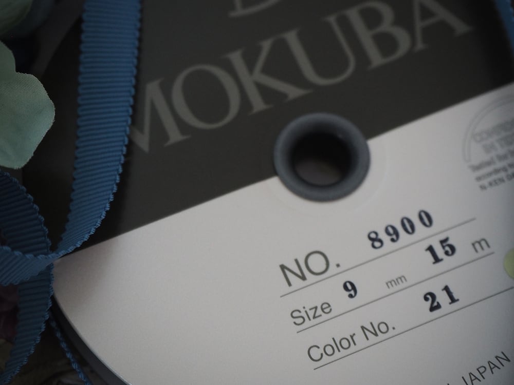 MOKUBA製リボン「グログラン8900☆No.21コスタールブルー」9mm