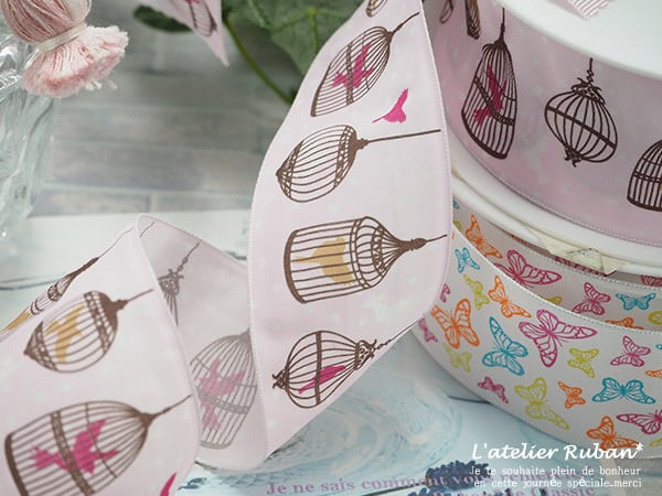 鳥かご柄がとってもキュートなリボンです。