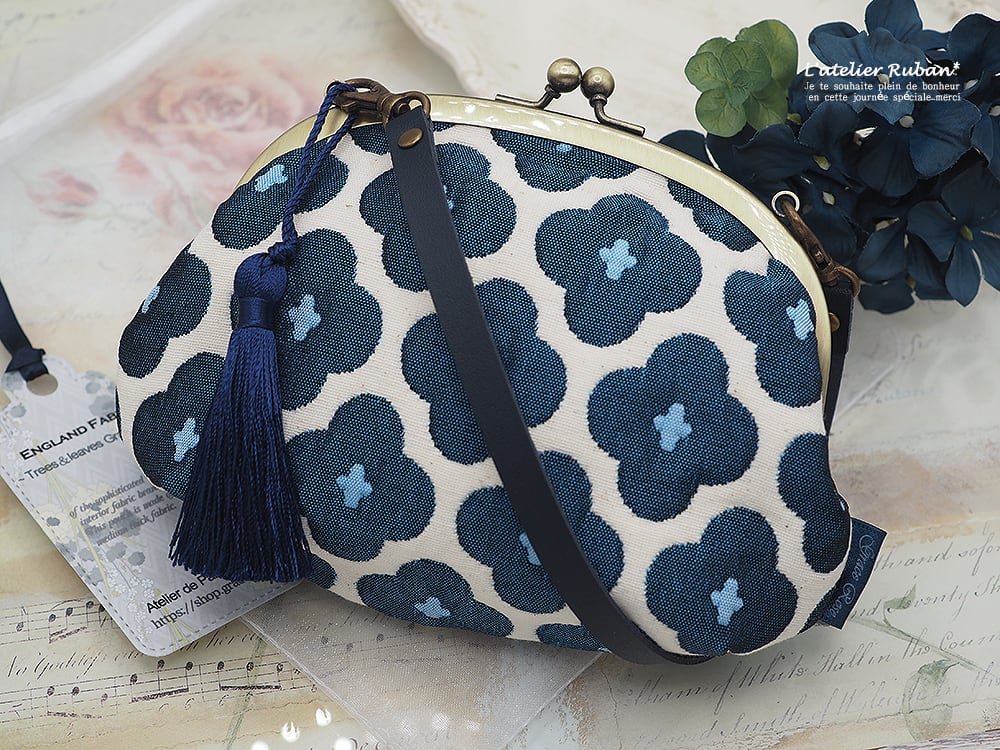 完売【フランス生地 】~Navy de fleurs~ がま口bag -15㎝サイズ-
