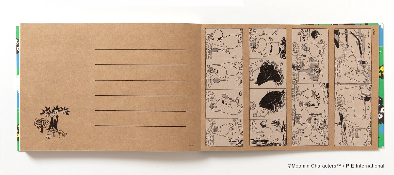 コミックスから抜粋したムーミンたちを、カラフルで楽しいレターブックに仕上がっています。