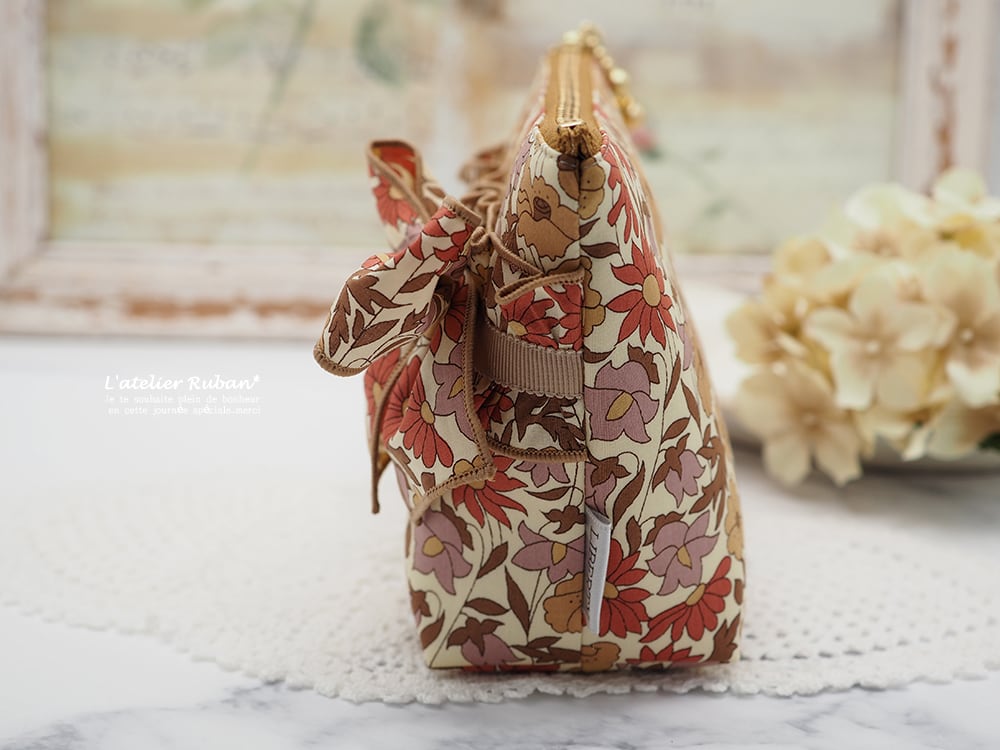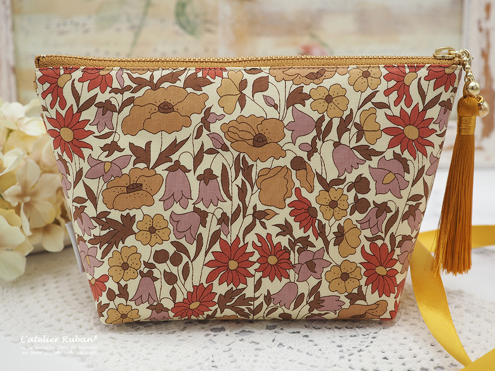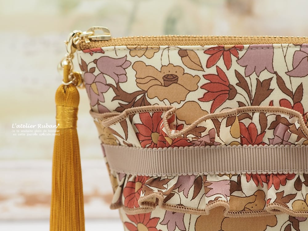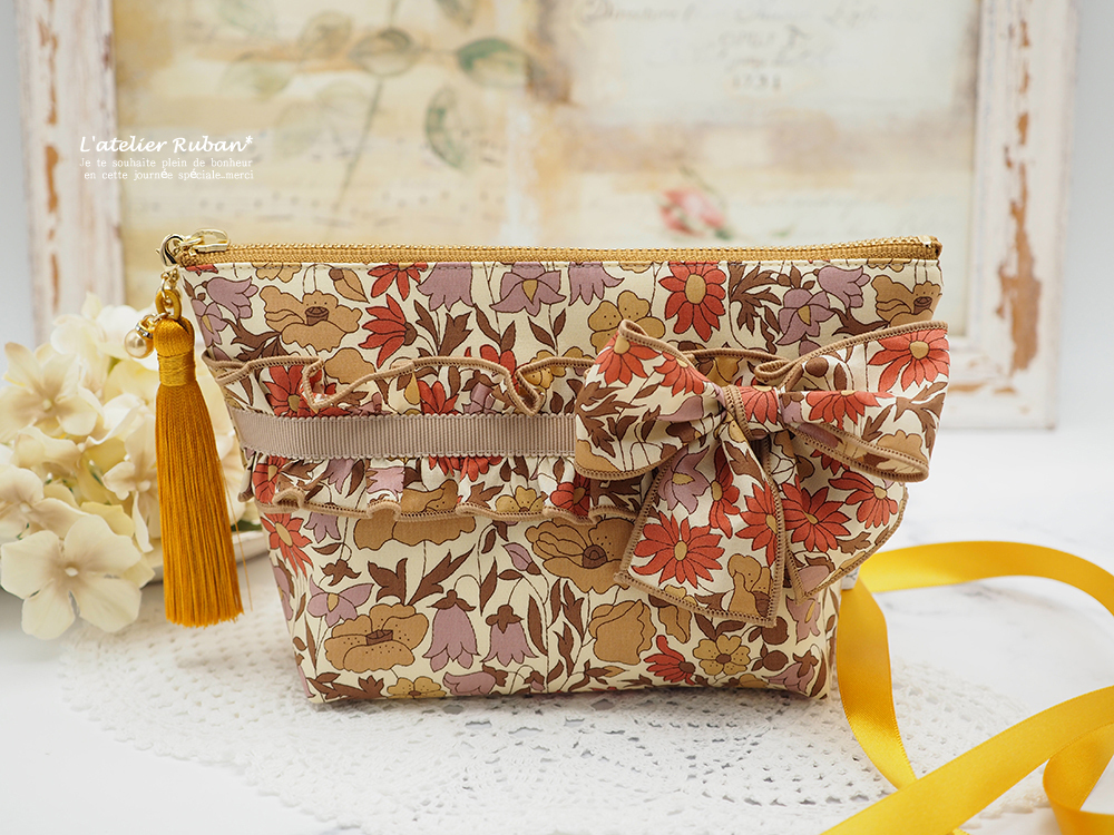 「国産LIBERTY ポピー&デージー」秋色フリルポーチ