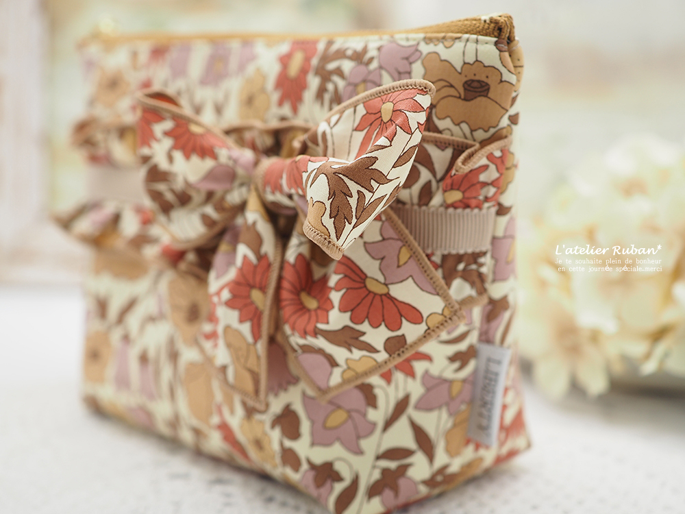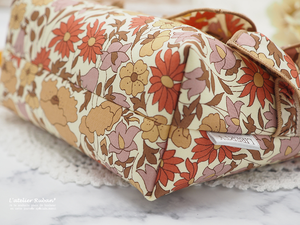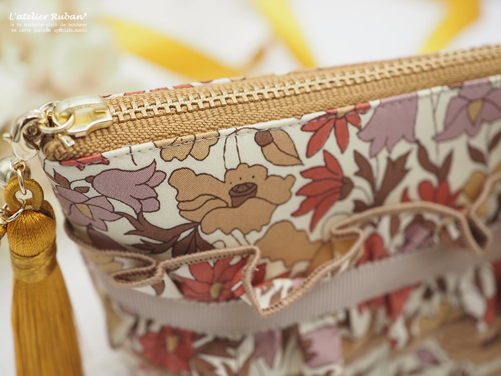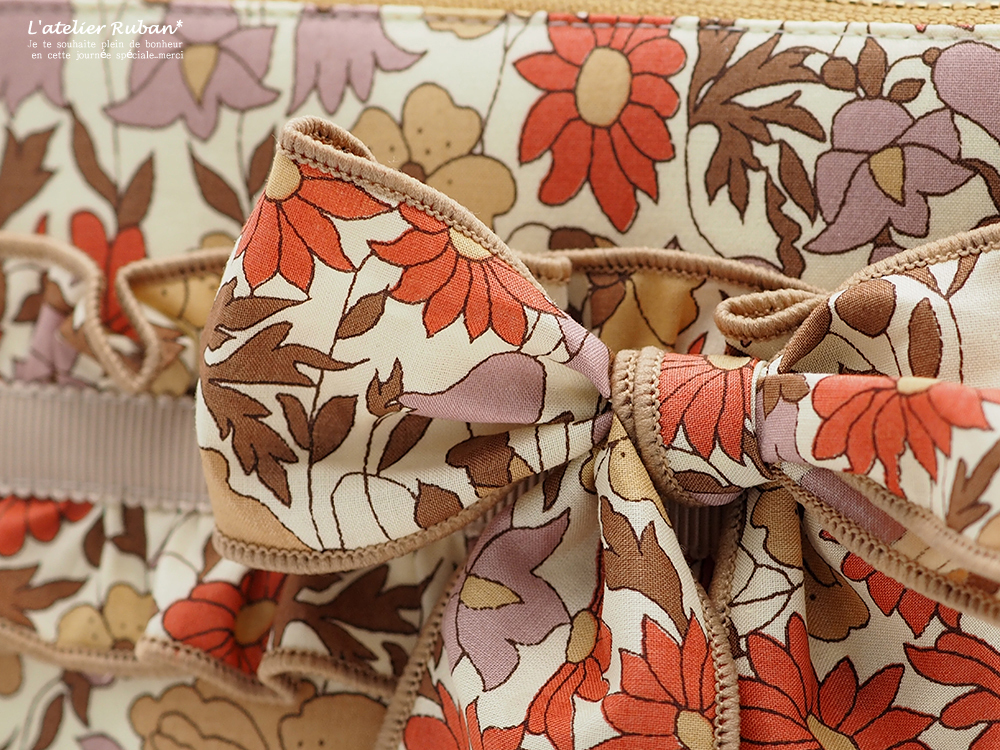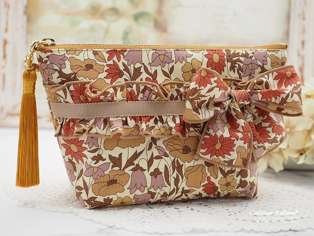 「国産LIBERTY ポピー&デージー」秋色フリルポーチ